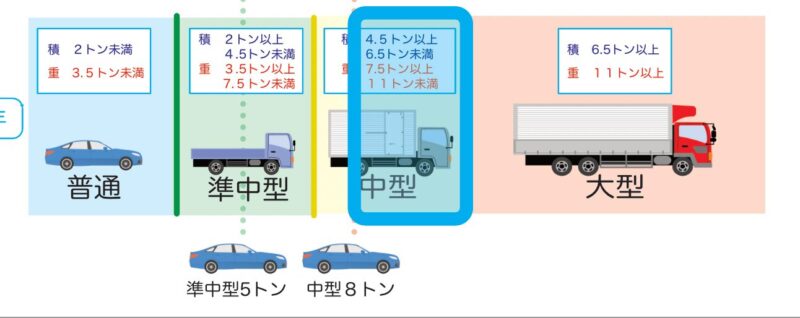 積載5トン未満・総重量8トン未満 → 「4トントラック」まで普通免許で運転可能