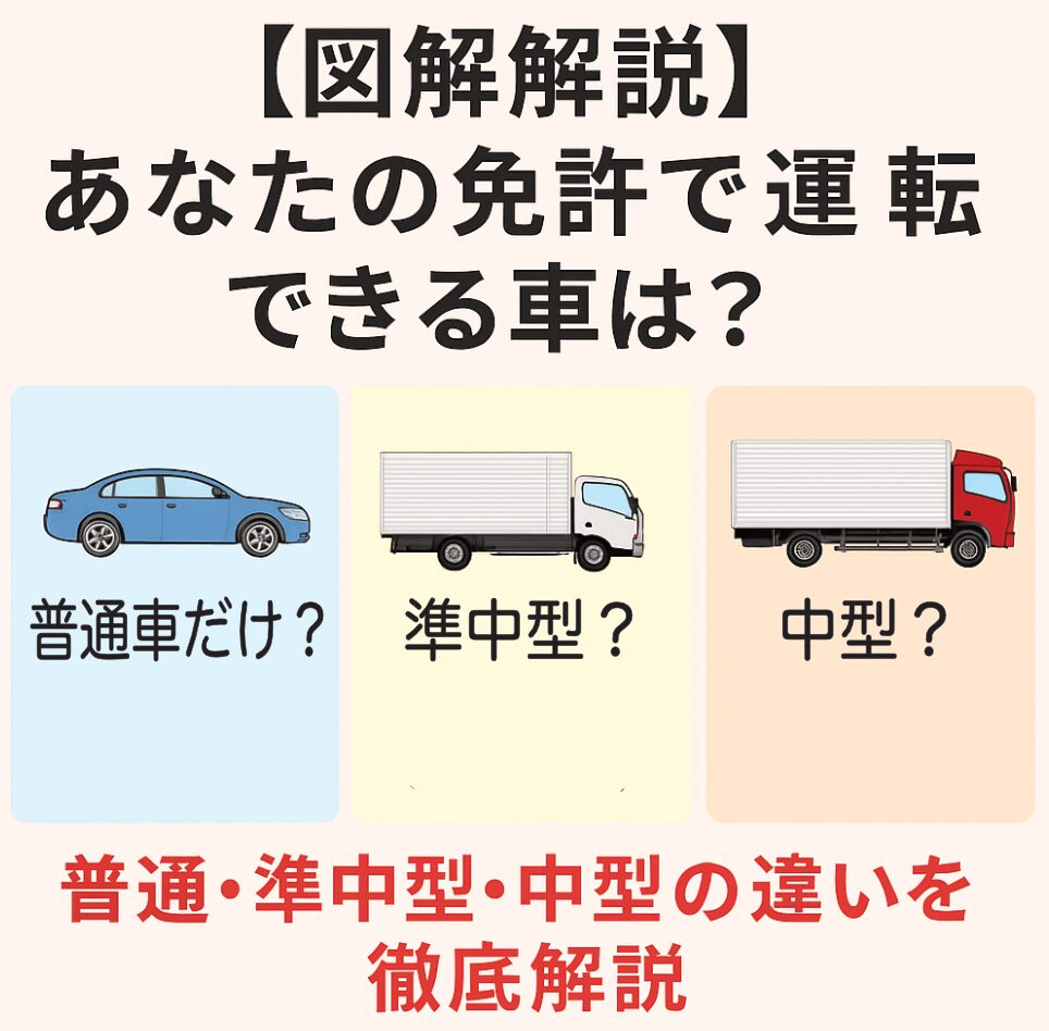【図解解説】あなたの免許で運転できる車を完全整理!普通・準中型・中型・大型の境界線とは?