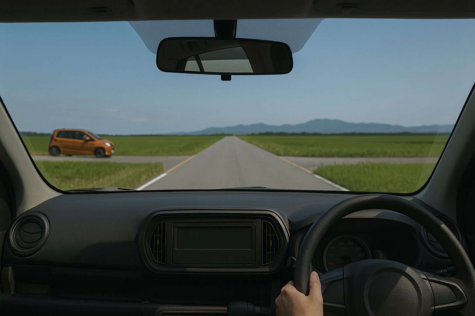 田園地帯の直線道路は景色が変わらず、退屈な運転になりがちです。