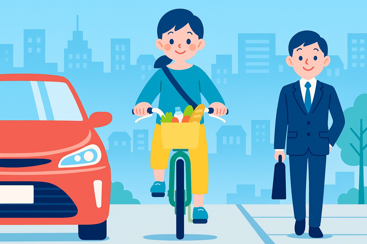 自転車は法律上「軽車両」に分類されます。したがって、横断歩道を自転車に乗ったまま横断する場合、運転者は必ずしも一時停止義務を負うわけではありません。