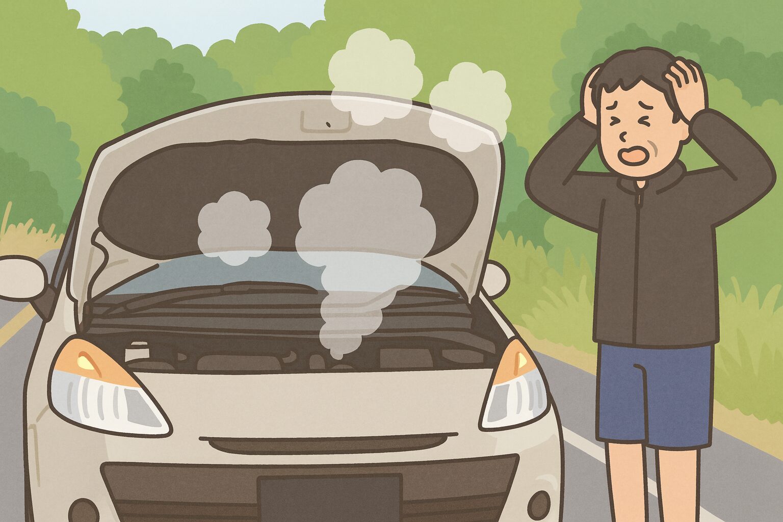 なぜなら、急にエンジンを止めると後続車との追突事故につながる危険があり、さらに高温のラジエーターをすぐに開けると熱湯が噴き出して大やけどを負う恐れがあるからです。