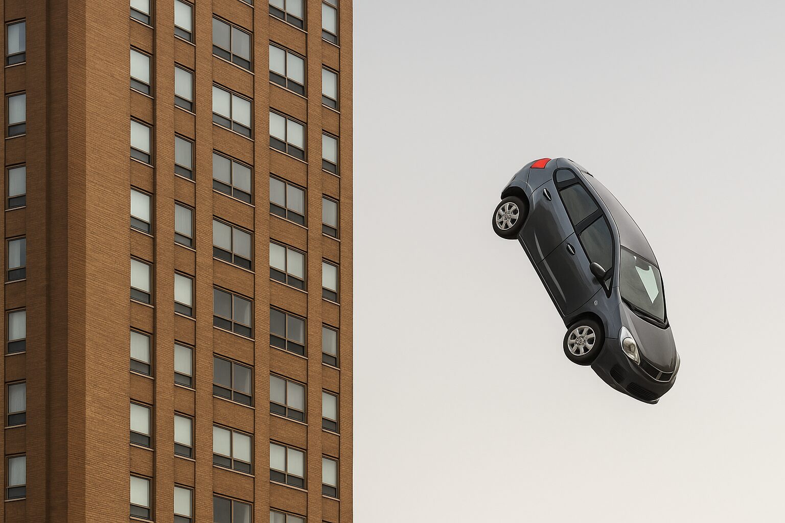 「時速60km/h」と聞くと、街中では少し速いくらいの速度に思えるかもしれません。しかし、このスピードでコンクリートの壁に正面衝突したとき、人体や車体が受ける衝撃は、ビルの5階(約14m)の高さから落ちるのと同等です。