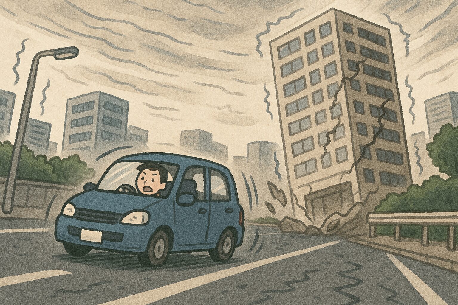 車を運転中、大地震が起こった時の対応方法