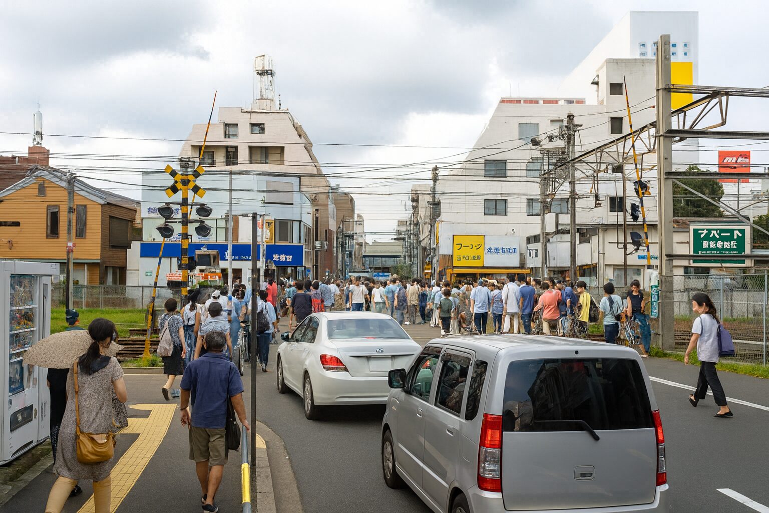 踏切は道幅が狭いことが多いため、中央寄りを走行することで歩行者や自転車との接触、車輪の落輪を防ぎます。 - 踏切内ではギアチェンジや停車をしない