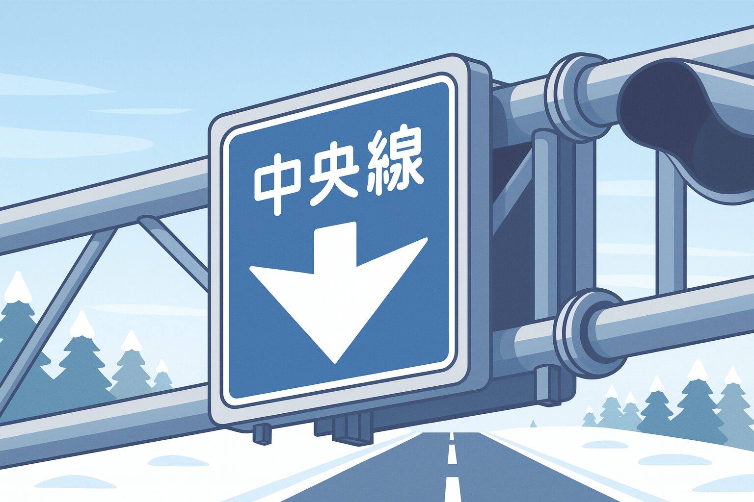 - 雪道や悪天候で中央線が見えにくいときは、中央線標識を頼りにする
