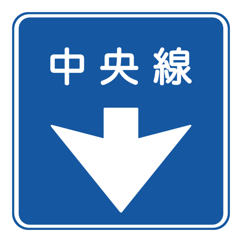 中央線標識は、道路標識の中でも「指示標識」に分類されます。青い四角の中に白い矢印と「中央線」と書かれた標識で、設置されている場所はそれほど多くはありません。