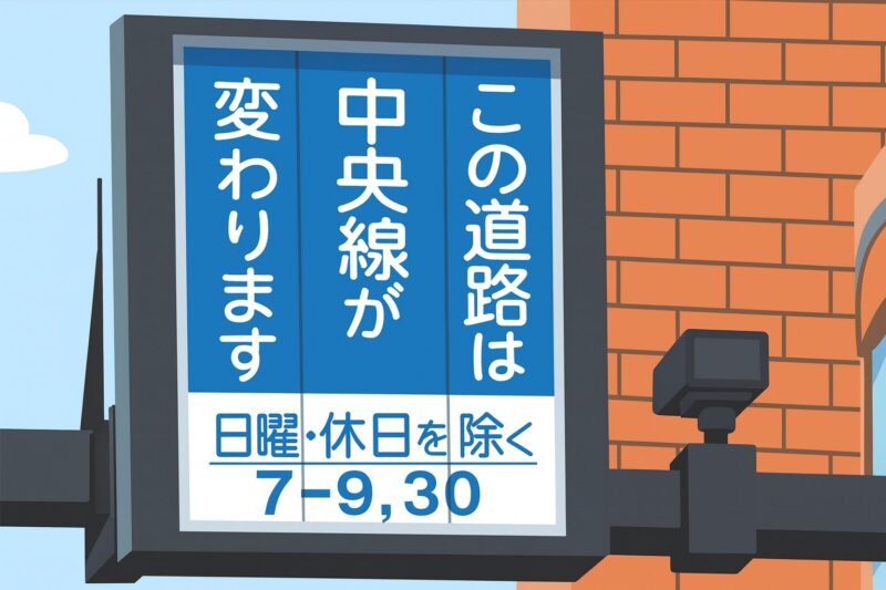 - 中央線の変更は頭上標識や路側標識で表示