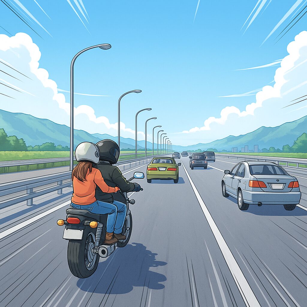 高速道路で二人乗りをする場合、運転者は**「同乗者の命を預かっている」**という強い責任を負います。事故が起きた際、同乗者の方が重傷を負いやすいという現実があります。