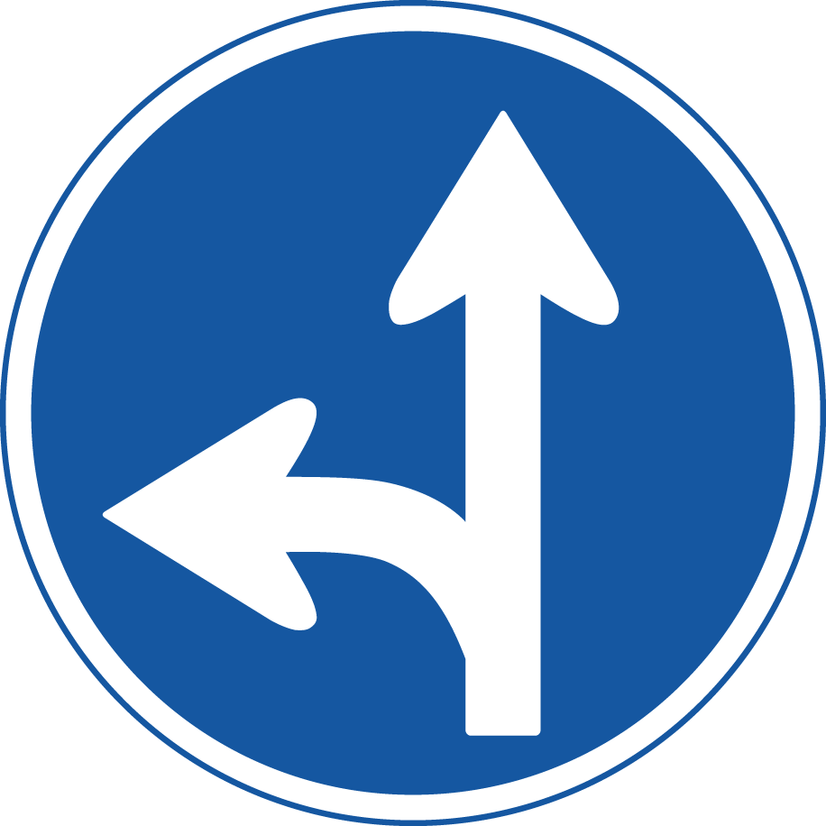 「左折禁止」という標識は厳密には存在しません。左折禁止を示すのは**「指定方向外進行禁止」**という標識です。この標識の中で、左方向の矢印がないものが左折を禁止しています。