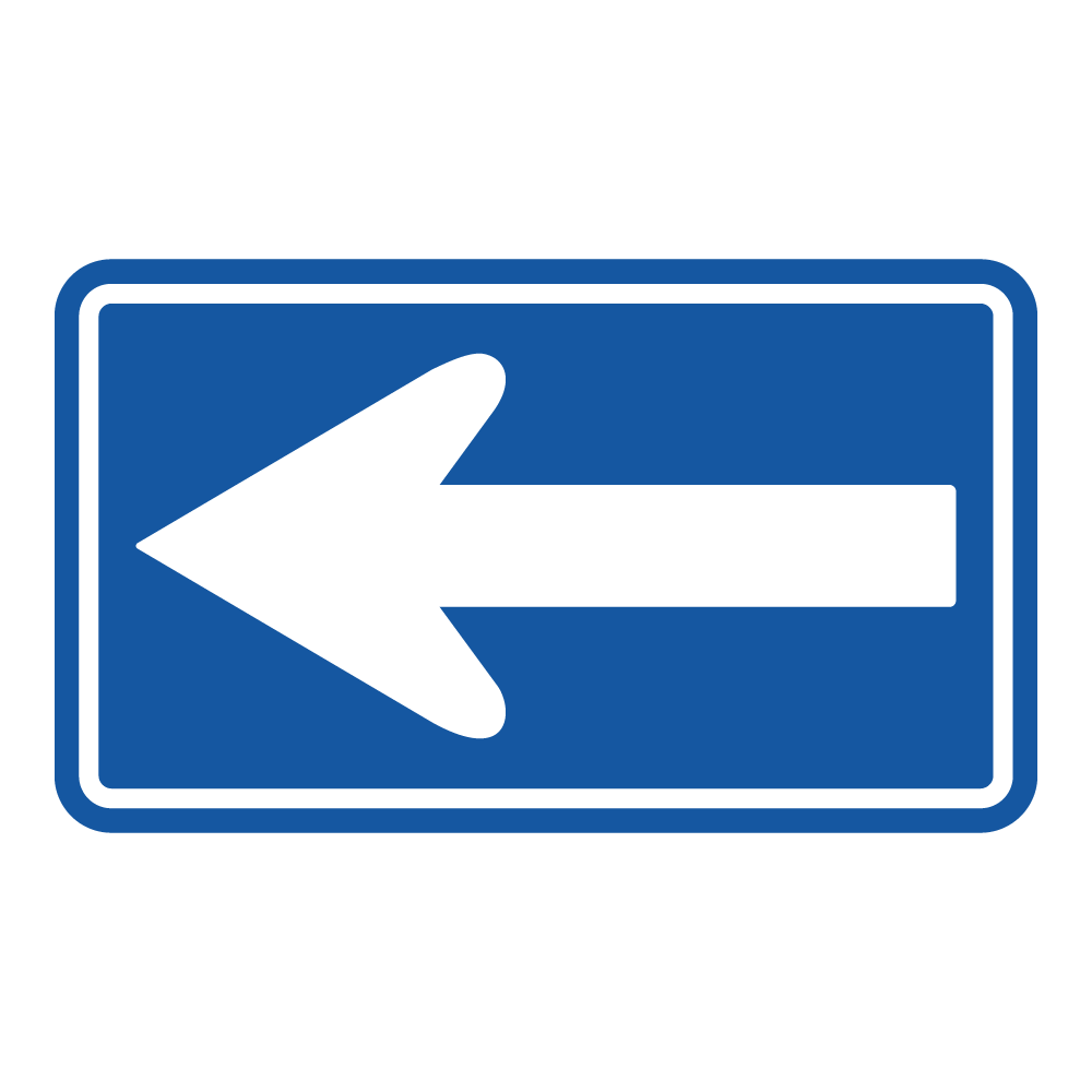 青地に白い矢印の「一方通行」標識は、進行方向のみを示します。この標識がある交差点でも、前方の信号が赤であれば停止しなければなりません。「左折可」とは全くの別物です。 - 「左折禁止」の示し方: