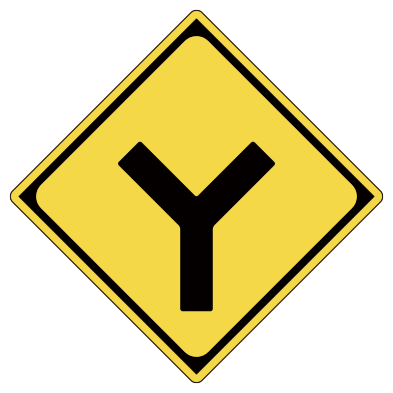 「Y型道路交差点あり」の標識は、**進路の「選択」を促す標識であり、「合流」**を示す標識ではないということを明確に区別しましょう。