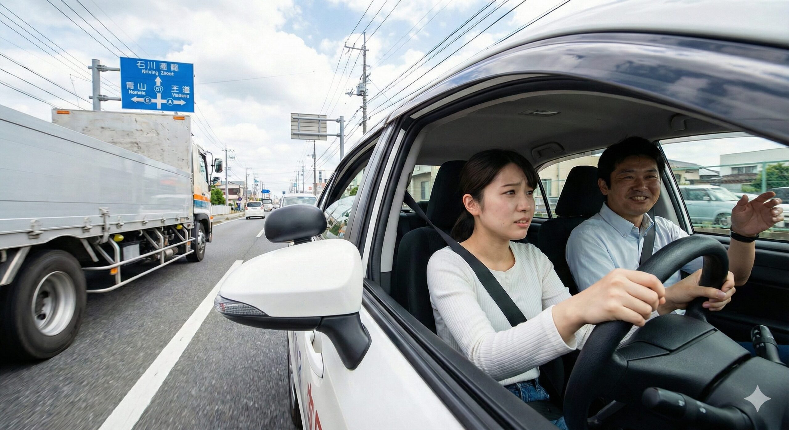 「は? 教習中に何ふざけたこと言ってるの?」 と思うかもしれませんが、これが一番効きます。真面目に考えすぎるから体が固まるのです。 やることはたった一つ。 「進路変更の合図(ウインカー)を出す」。これだけです。