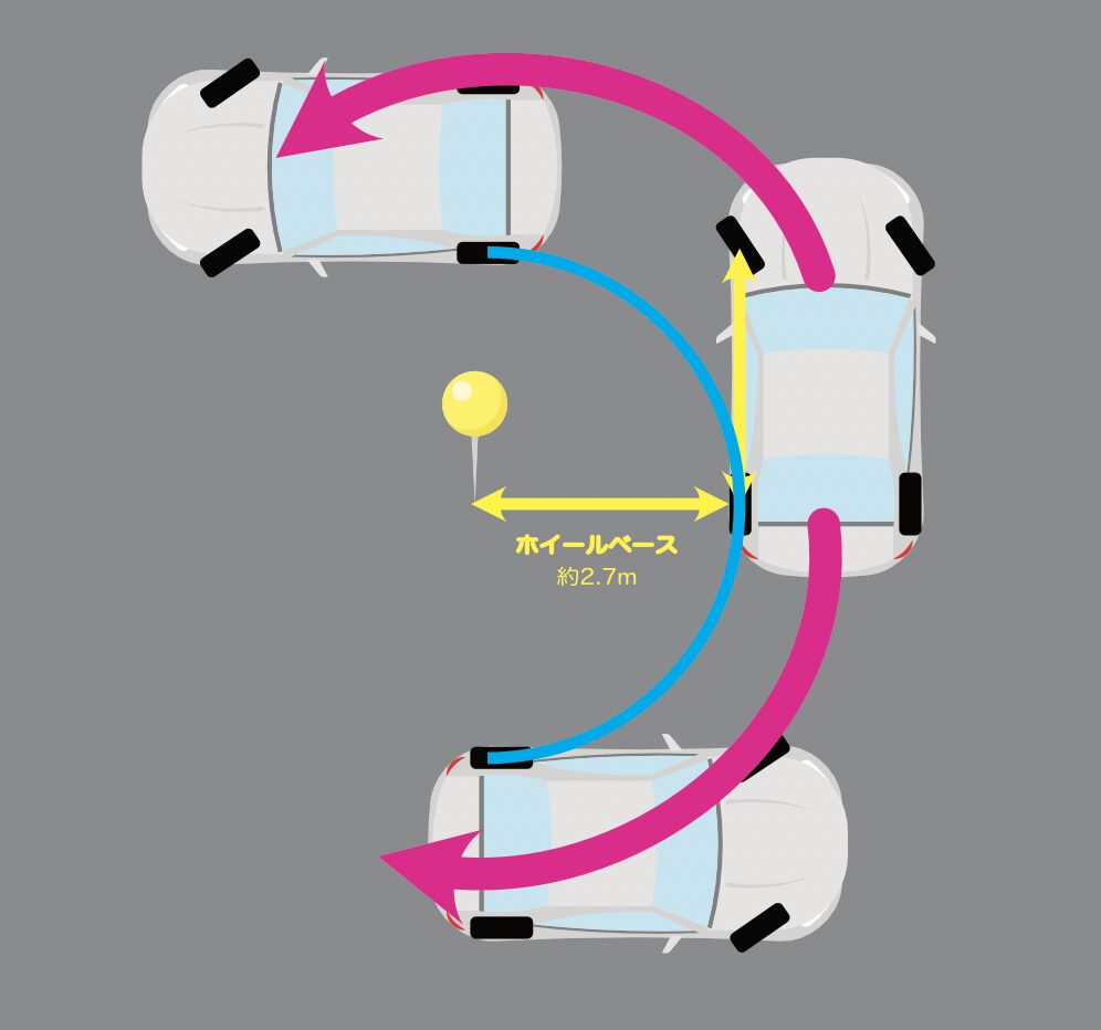 4. 出口への幅寄せ 無事にバックで入れたものの、車が出口側に寄りすぎてしまった場合。そのまま出ようとすると内輪差で後輪が引っかかります。無理に出ず、「幅寄せ」を使って車を反対側に寄せ直しましょう。 失敗しない幅寄せのコツ
