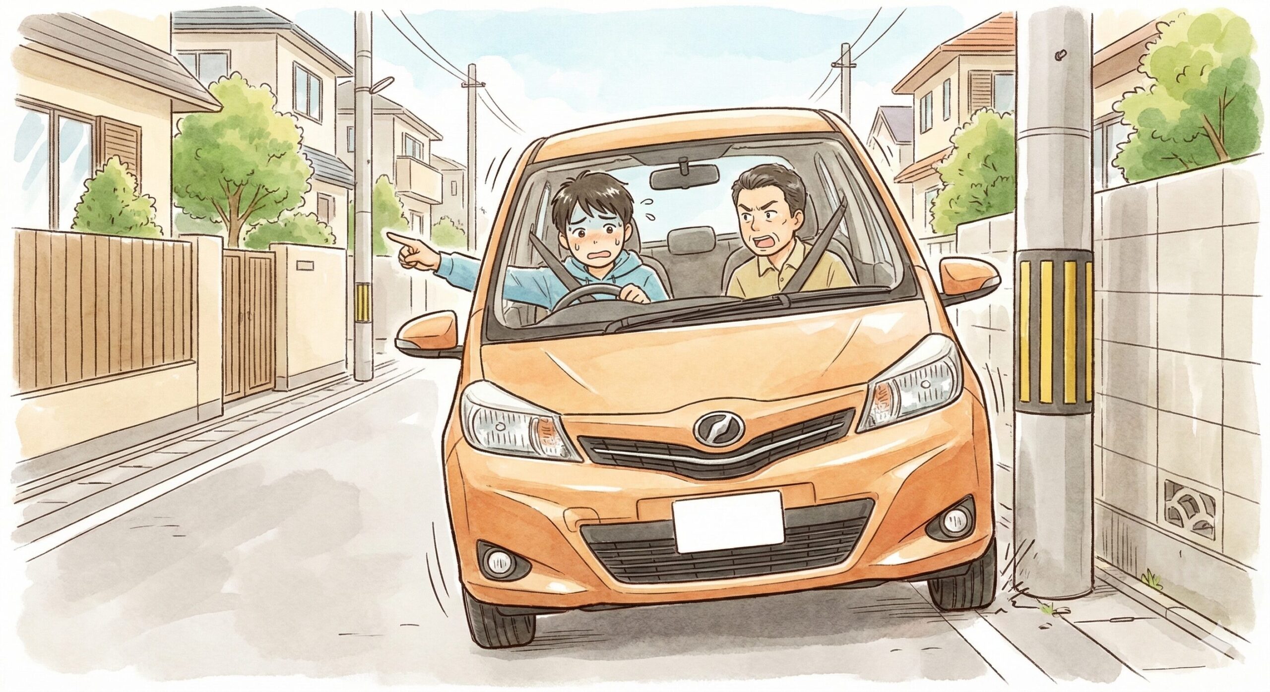 路上教習が始まると、助手席に乗っている私たち指導員が思わず「危ない!」と補助ハンドルを握る瞬間があります。それが、今回のテーマである**「左寄り問題」**です。