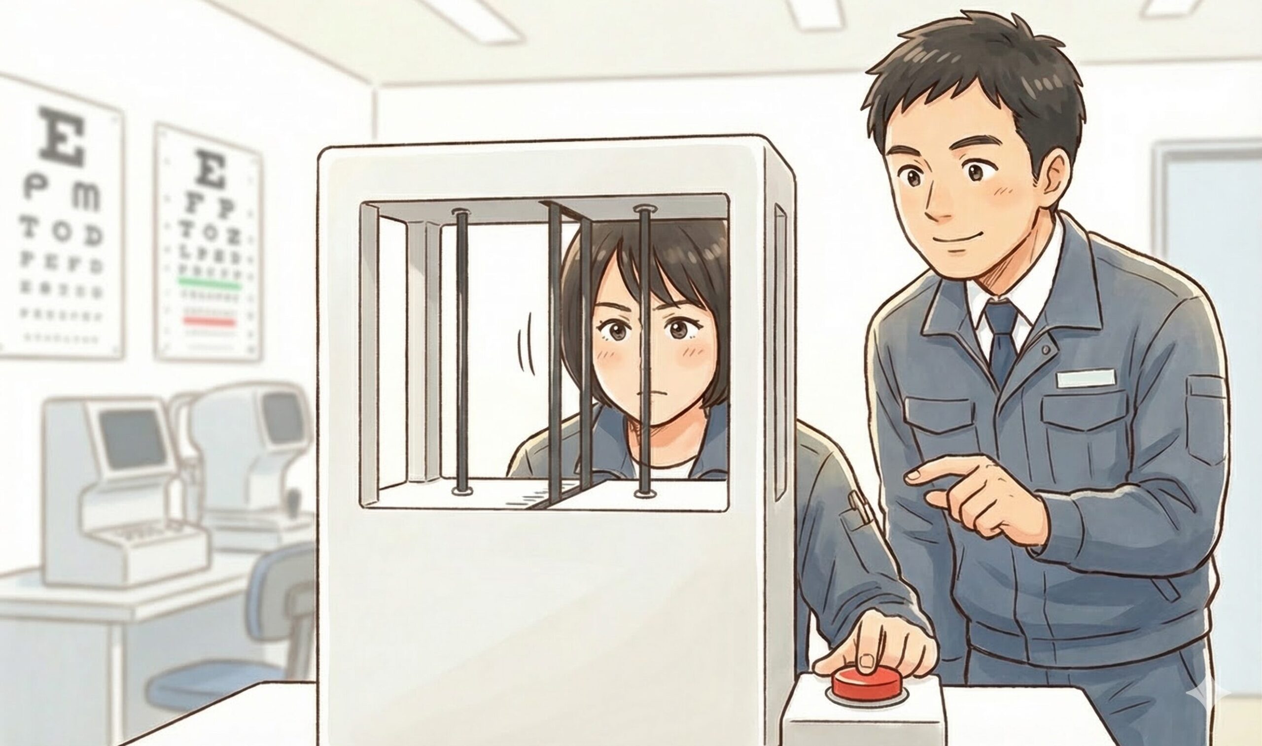 4. 「深視力検査のやり方に慣れていない」 実は、これが最も多い原因です!コツを知らずに焦ってボタンを押しているだけで、やり方さえ分かればすんなり合格できる人がたくさんいます。