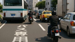 交通ルールその他【学科試験】バス専用通行帯は自動二輪も左折のためなら通行できる? 学科試験のひっかけ問題に多い「バス専用通行帯」。原則は通行不可ですが、左折時など例外的に通行できるケースがあります。本記事では、自動二輪が通れる条件や試験で間違えやすいポイント、実際の運転での注意点をわかりやすく解説します。 2025.09.21交通ルールその他学科試験問題集